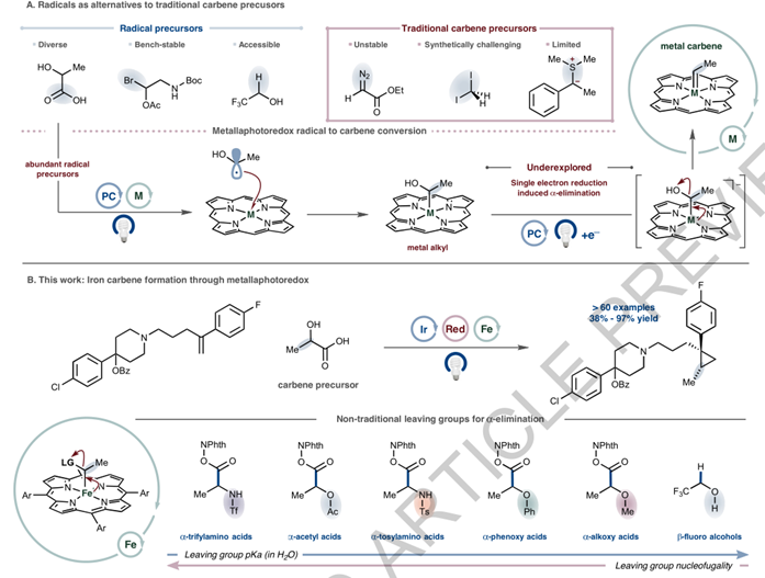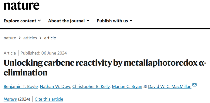 文献链接:Unlocking carbene reactivity by metallaphotoredox α-elimination,2024,https://doi.org/10.1038/s41586-024-07628-1)