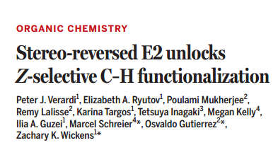 文献链接:Stereo-reversed E2 unlocks Z-selective C-H functionalization,2025,https://doi.org/ 10.1126/science.adv7630)