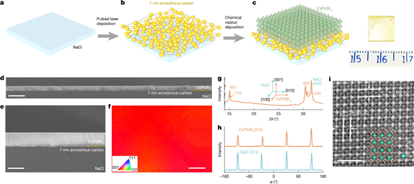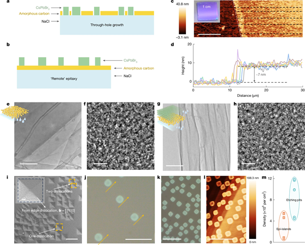 图2 通过远程外延在a-C/NaCl上制备CsPbBr3薄膜 © 2025 Springer Nature
