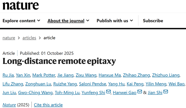 原文详情: Long-distance remote epitaxy (Nature 2025, DOI: 10.1038/s41586-025-09484-z)
