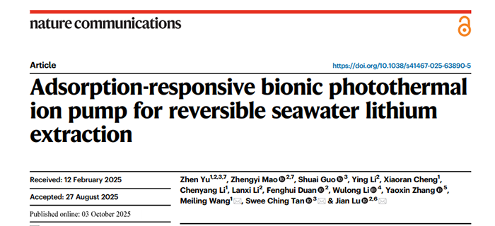面对全球日益增长的锂资源需求,储量巨大的海水被视为未来的“液态锂矿”。然而,海水中极低的锂浓度和高度的钠锂比,对提锂材料与技术提出了更高的要求。近期,联合香港城市大学吕坚院士、太原理工大学王美玲与新加坡国立大学Swee Ching Tan(陈瑞深)团队合作在Nature Communications期刊发表题为“Adsorption-responsive bionic photothermal ion pump for reversible seawater lithium extraction”的研究论文。