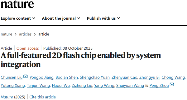原文详情:A full-featured 2D flash chip enabled by system integration (Nature 2025, DOI: 10.1038/s41586-025-09621-8)