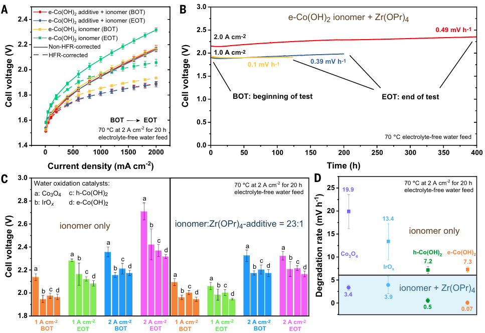 图2以纯水为原料时的AEMWE性能。© 2025 Science