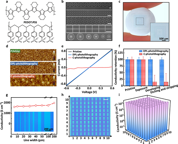 图4:有机半导体/绝缘层的无损光刻图案化。