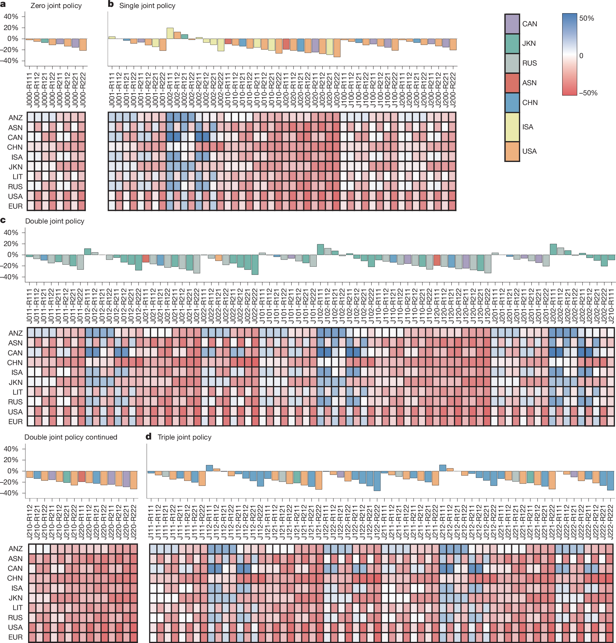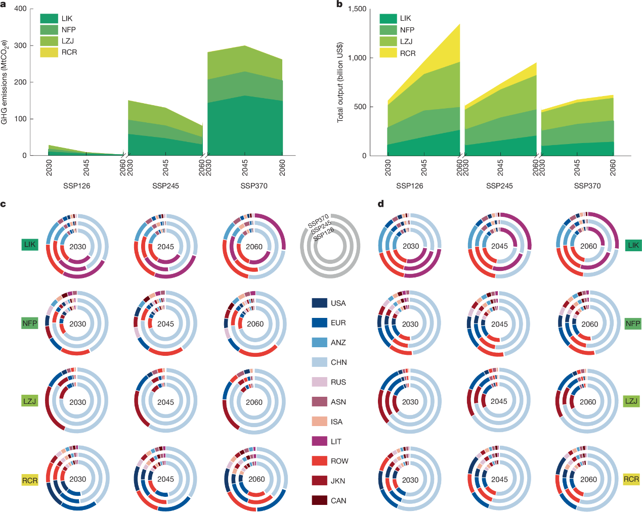 图4. 四种协调方案下各区域的温室气体排放强度变化© 2025 Springer Nature Limited