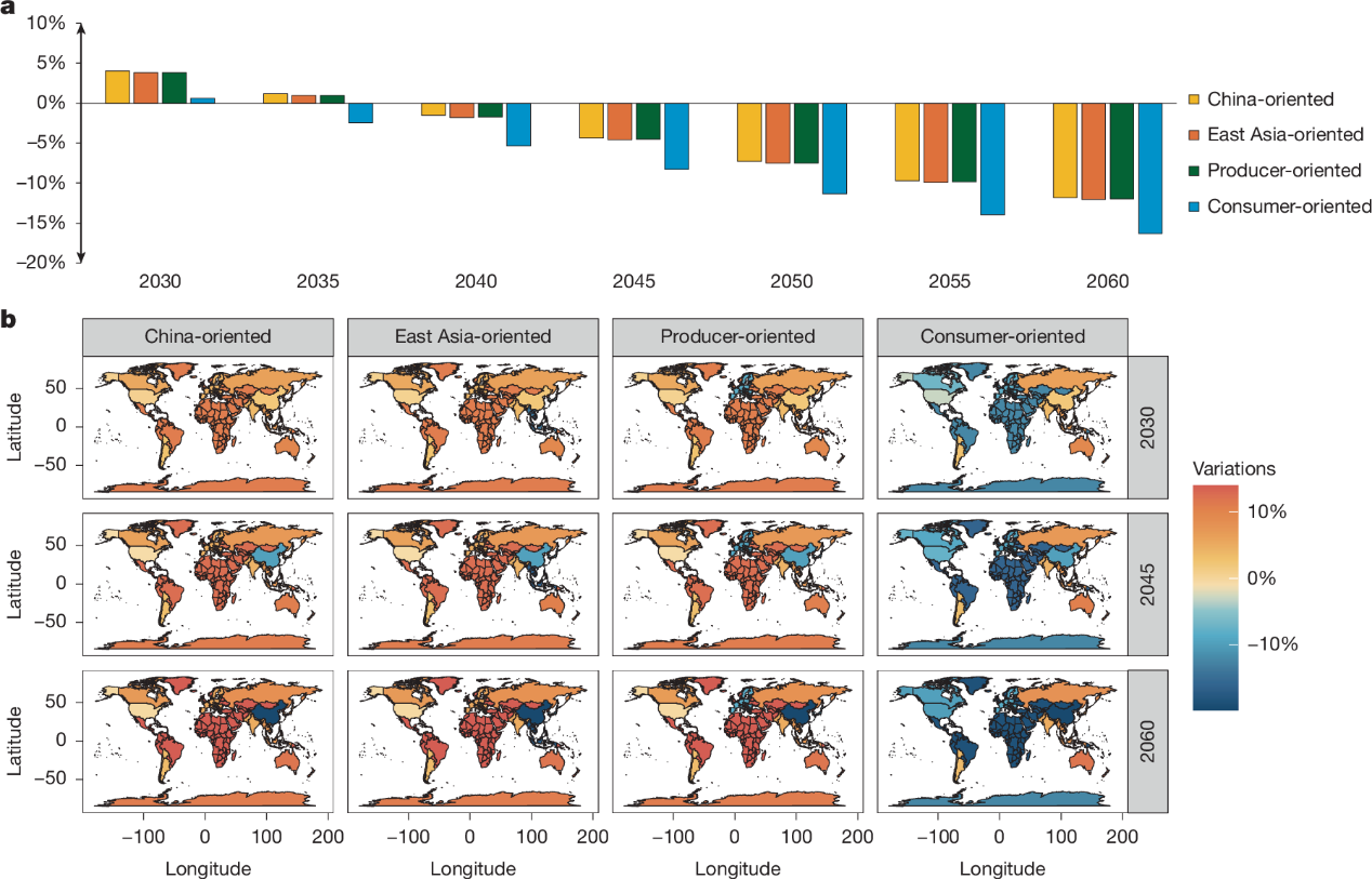 图5. 2060年综合循环经济策略对温室气体排放强度的影响分析© 2025 Springer Nature Limited