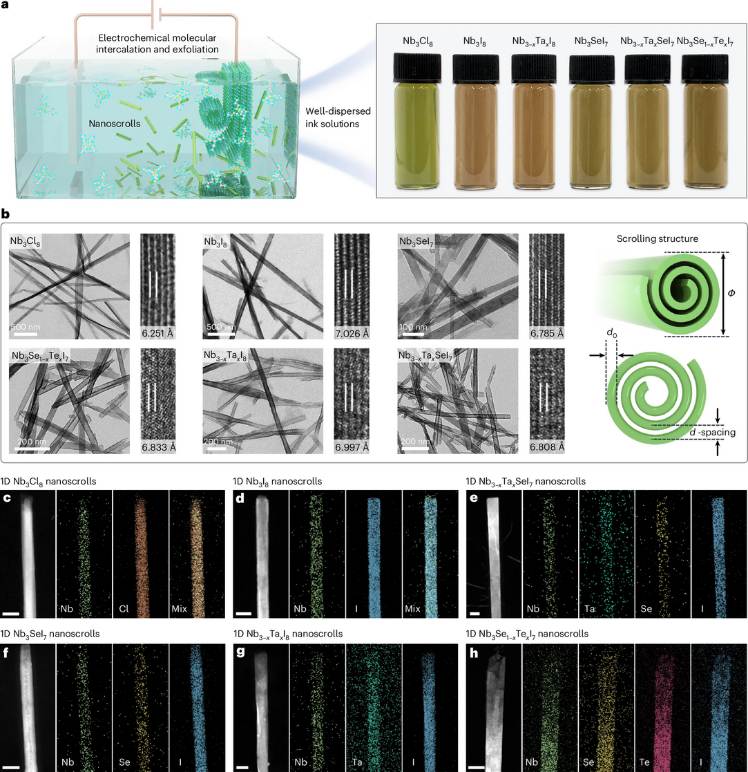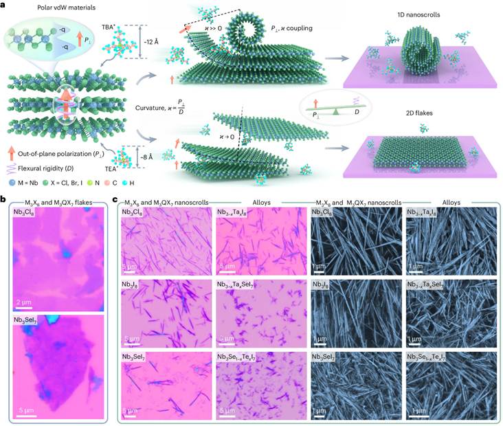 图1. 通过插层调控实现极性范德华材料一维纳米卷与二维片层的可控合成的几何工程 © 2025 Springer Nature