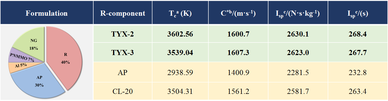 注:a燃烧温度,b特征速度,c比冲(NASA-CEA软件计算)