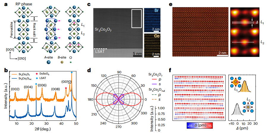 图1双层 Ruddlesden-Popper 钙钛矿 Sr3Co2O7 中的极性表征;© Springer Nature Limited 2025