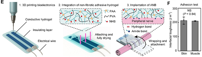 图1无纤维化黏附性生物电子界面示意图(Featured image on Science Advances)