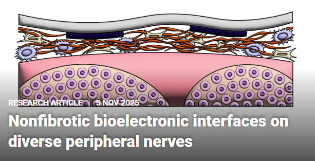 1. H. Moon, B. F. G. Aymon, J Deng, T Zhou, V Prevosto, F Wang, J. Wu* Xuanhe Zhao*, Adhesive nonfibrotic bioelectronic interfaces on diverse peripheral nerves. Science Advances 11, eadz3668 (2025). Doi: 10.1126/sciadv.adz3668.