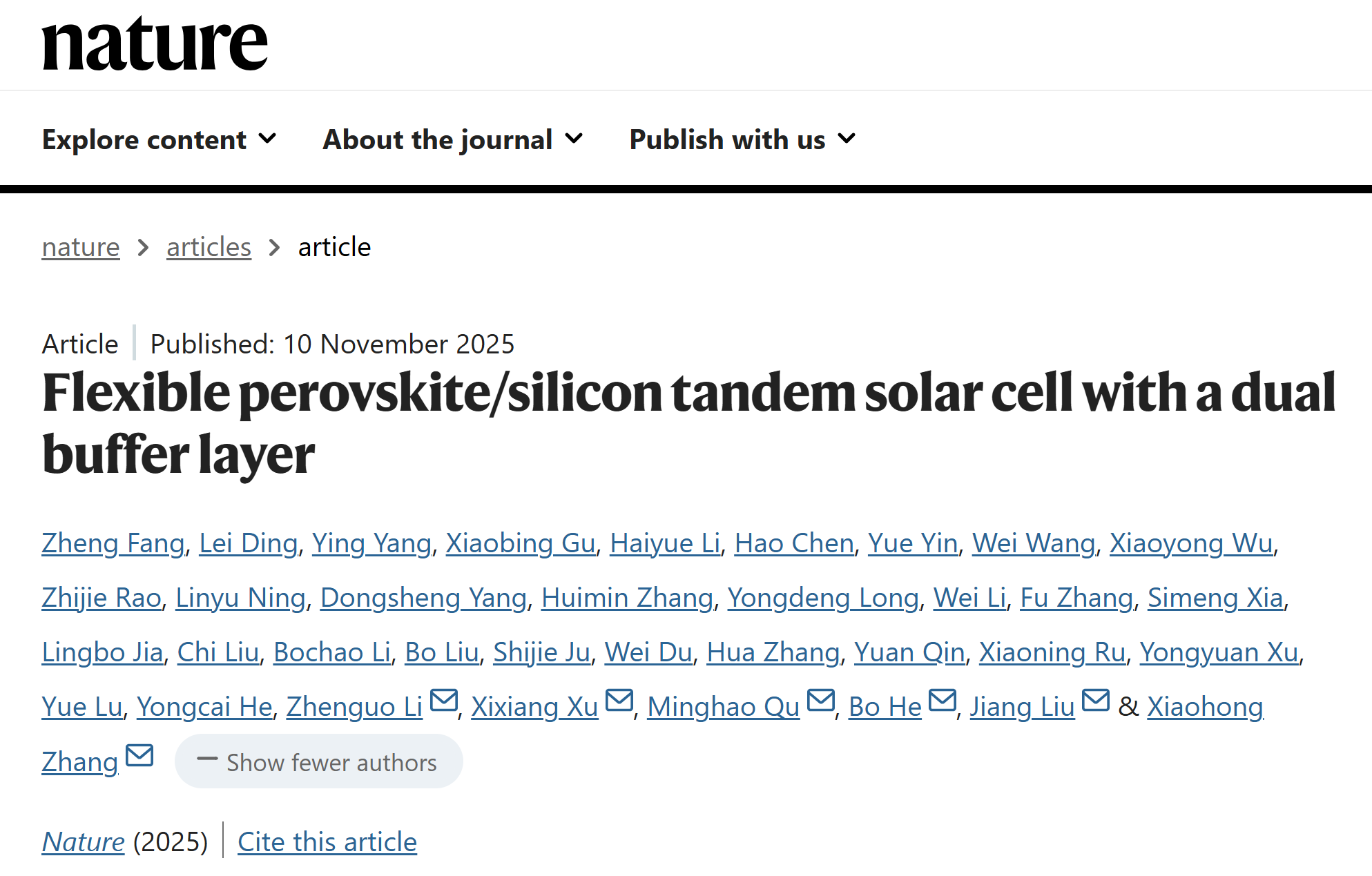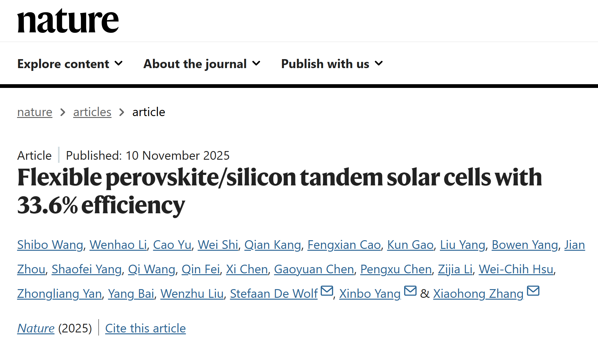 针对上述问题,苏州大学张晓宏教授团队与产业界等合作单位通过采取两种不同的创新策略,分别围绕“稳定性”和“转换效率”取得了突破。两项研究成果同日于《Nature》期刊在线发表,标志着柔性叠层光伏技术向实际应用迈出了重要一步。