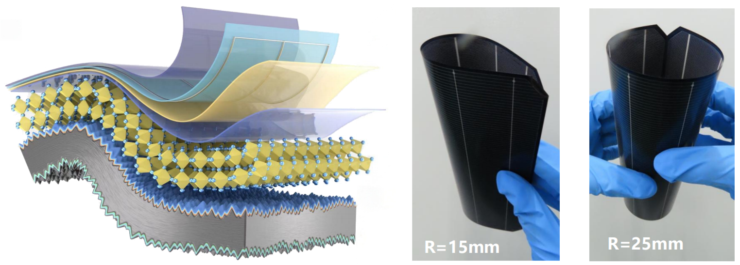 柔性叠层太阳能电池因其优异的功率-质量比和可弯曲特性,在航空航天、可穿戴设备、建筑光伏一体化(BIPV)及可移动能源等领域具有重要应用潜力。然而,该技术的产业化仍面临两个主要挑战:一是在反复弯折和工况环境下界面稳定性较差,容易发生分层失效;二是柔性器件的转换效率与传统刚性器件相比仍有明显差距。