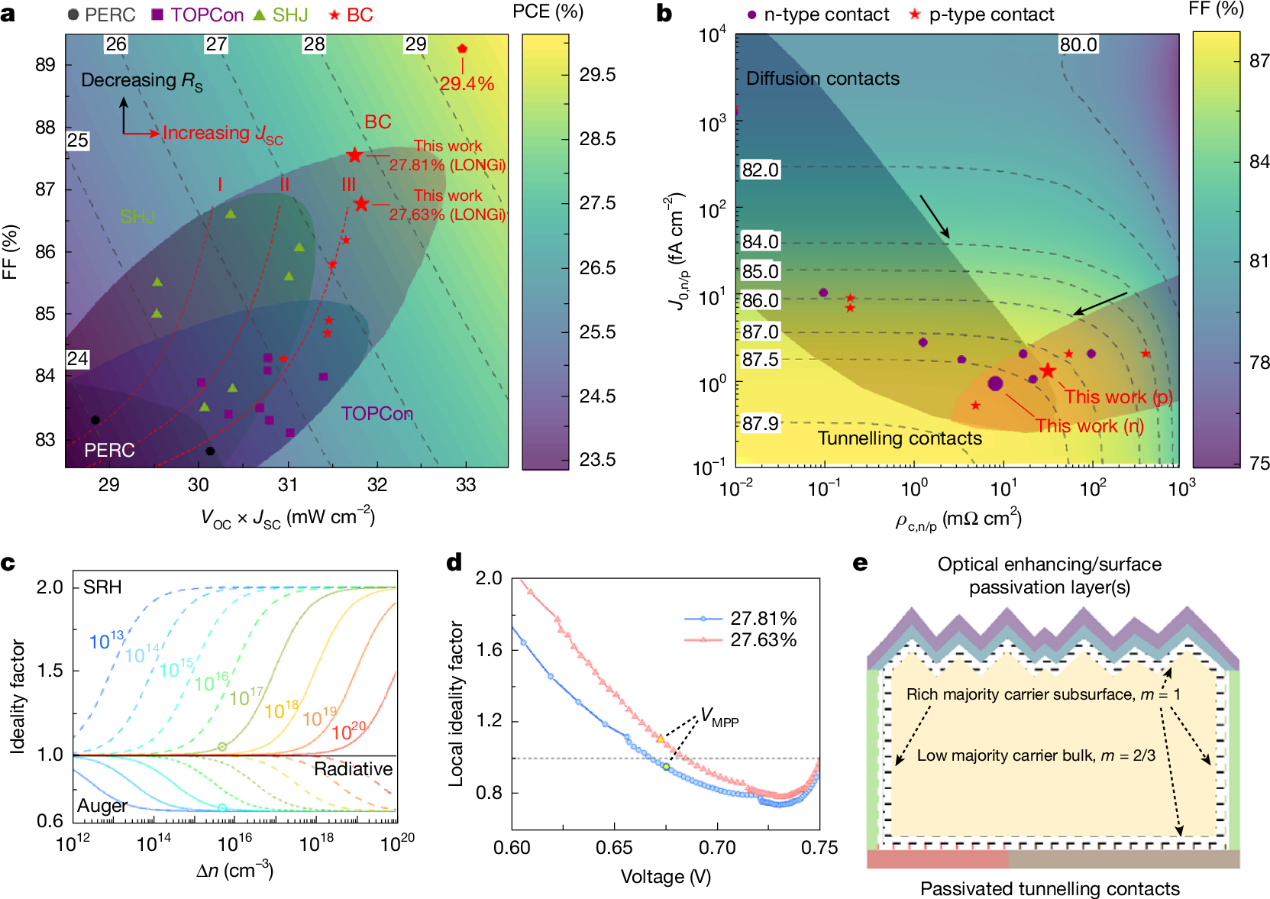 图4. 高效硅太阳能电池的研究进展与理论分析。© 2025 Springer Nature Limited