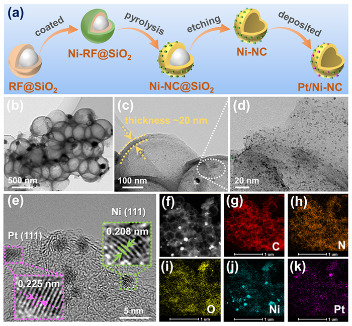 图1 Pt/Ni-NC催化剂的合成路线和微观结构表征 ©