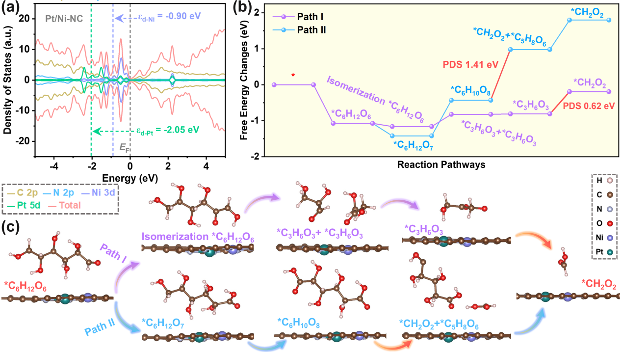 作者通过精确调控Pt与Ni的组分及碳载体结构,制备出高分散的Pt-Ni纳米催化剂。该催化剂在葡萄糖电氧化过程中表现出优异的催化活性和稳定性,同时在阴极侧有效促进氢气析出,实现了电能驱动下的生物质高值化与能源共生产。这一策略打破了传统电解水仅产氢的单一模式,将“废弃生物质”转化为“绿色能源+高附加值化学品”的新途径,为未来可持续能源体系提供了新范式。