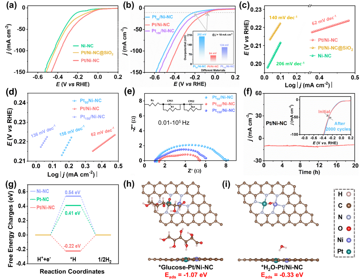 - 双功能协同催化设计:通过引入Pt调控Ni的电子结构,促进葡萄糖电氧化反应与HER的协同进行,实现高效能量利用。