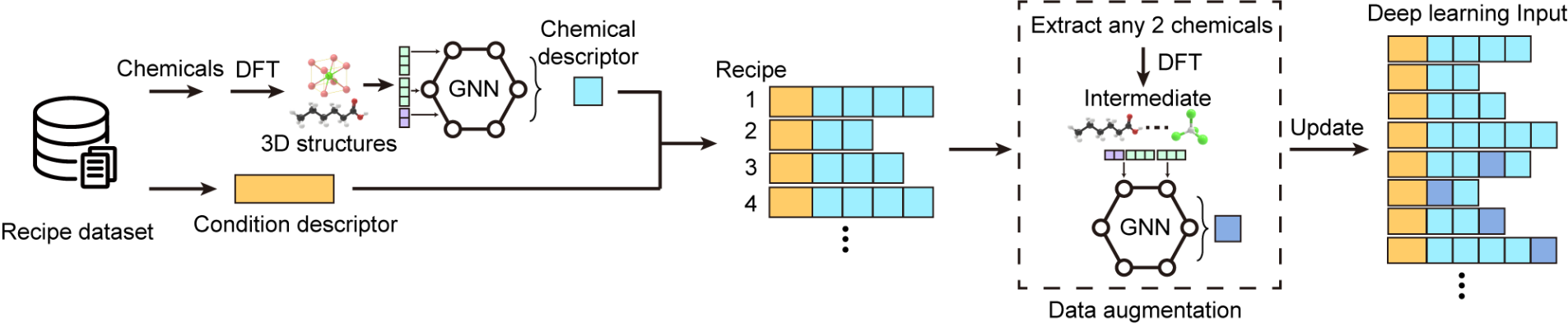 该研究工作主要包含两个核心部分:高通量实验数据的自动解析和合成结果的深度学习预测。