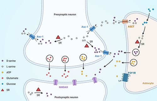 图4 内源性手性分子:大脑三联体突触的胶质传递