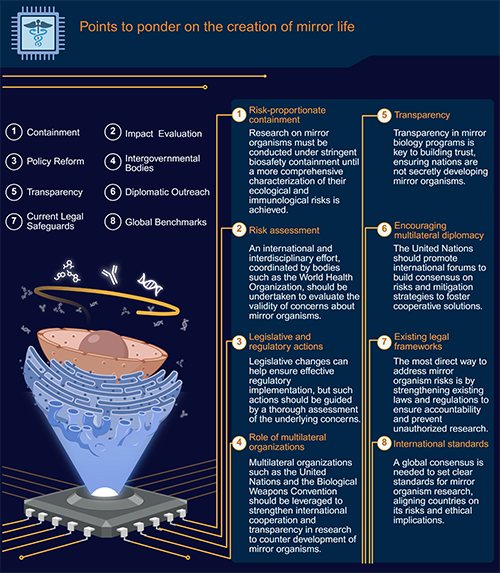 - 跨学科治理蓝图:强调现有法规无法覆盖镜像生命的“正交生物学”特性,呼吁建立独立于传统合成生物学的新监管范式。