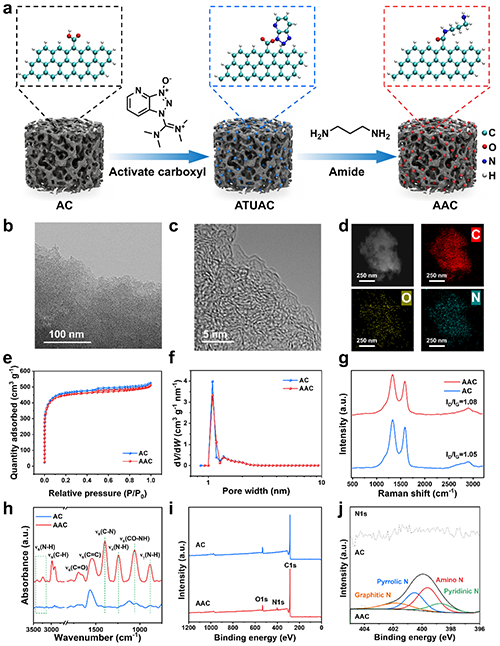 图2 电极表面氨基化策略示意图及材料形貌、孔结构和表面化学表征