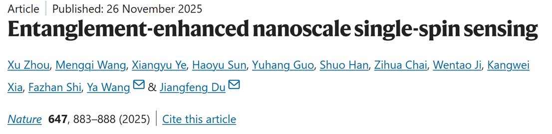 中国科学技术大学(合肥)杜江峰院士最新Nature:纠缠增强的纳米级单自旋传感