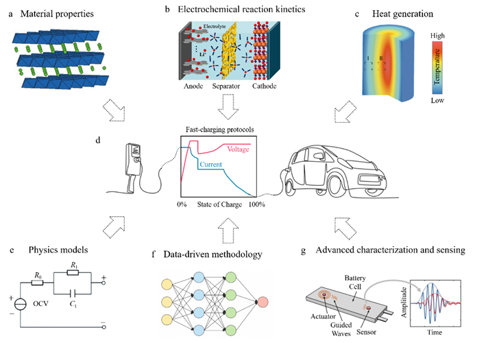 锂离子电池(Li-ion batteries, LIBs)在交通运输、电网储能与消费电子等领域的快速应用,持续推动着对兼顾充电速率、安全性、与性能的快充解决方案的需求。实现高效而可靠的快充过程,必须依托于对电池衰退机理、离子传输限制以及热管理约束的系统理解与定量分析。然而,当前商业电子设备与电动汽车(EV)中普遍采用的充电协议,大多基于经验优化,缺乏充分的机理透明度与物理一致性支撑。
