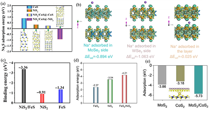 DFT计算可以预测吸附过程中的能量变化,揭示吸附过程中的微观机制,能够深入分析吸附分子与固体表面之间的相互作用,包括吸附能量、吸附构型和吸附位点等信息。DFT计算能够精确预测材料表面的吸附能,为设计出高效的钠离子电池负极材料提供了理论支持。