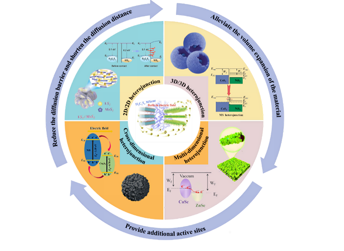- 提出了一种利用跨维度异质结(如 0D-2D、2D-3D)复合材料的策略,以有效提高钠离子电池的比容量、倍率性能和循环稳定性。