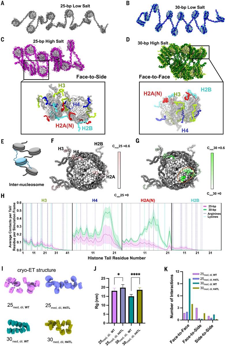 图3 在凝聚相中25 bp与30 bp染色质的分子结构差异© 2025 AAAS