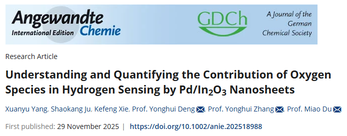 Xuanyu Yang, Shaokang Ju, Kefeng Xie, Yonghui Deng*, Yonghui Zhang*, Miao Du*. Understanding and Quantitation of the Contribution of Oxygen Species in Hydrogen Sensing Based on Pd/In2O3 Nanosheet.