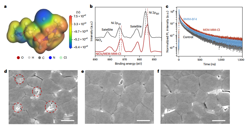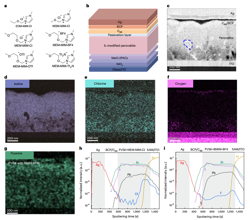 图2 离子液体注入对钙钛矿埋层底部界面的影响;© Springer Nature Limited 2025