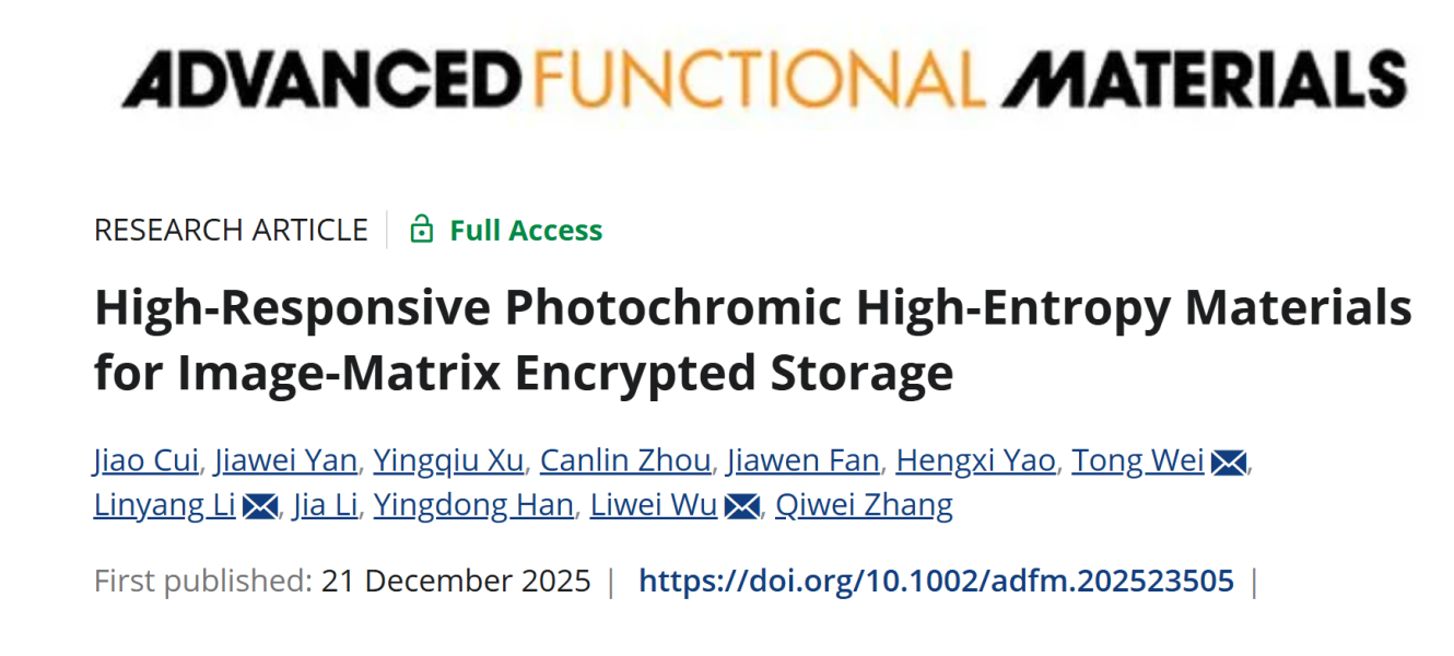 Title: “High-Responsive Photochromic High-Entropy Materials for Image-Matrix Encrypted Storage “