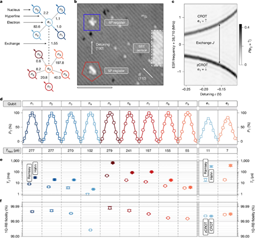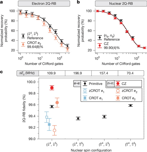 图2 核自旋(CZ)与电子自旋(CROT)之间的高保真双比特操作 © 2025 Springer Nature