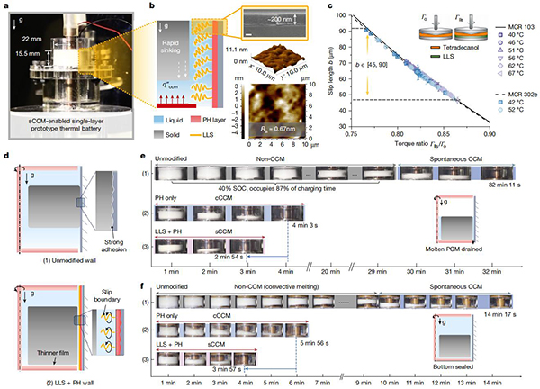 相关研究成果以“Pulse heating and slip enhance charging of phase-change thermal batteries”为题发表在Nature上。