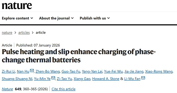 文献链接:“Pulse heating and slip enhance charging of phase-change thermal batteries”(Nature,2026,10.1038/s41586-025-09877-0)