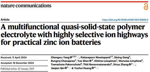 6. Nature Communications: 面向实用化锌离子电池的多功能准固态聚合物电解质——构建高度选择性离子传输通道