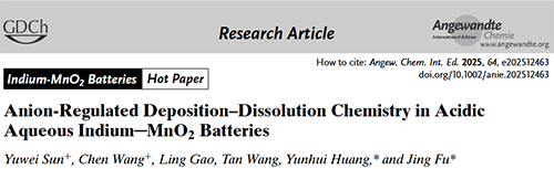 13. Angewandte Chemie International Edition:阴离子调控的酸性水系铟─MnO2电池中的沉积-溶剂化化学