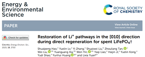 16. Energy & Environmental Science:废旧LiFePO₄直接再生过程中[010]取向锂离子通道的修复研究