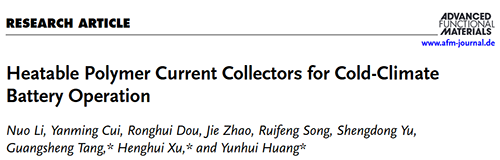 24. Advanced Functional Materials:可加热聚合物集流体用于寒冷气候电池运行的锂离子电池