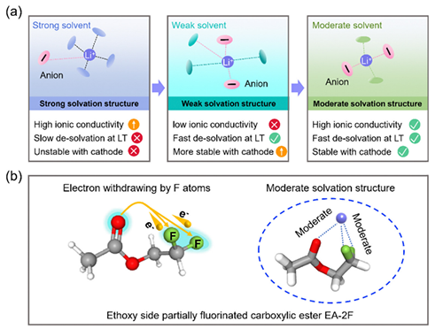 华中科技大学黄云辉、许恒辉教授团队系统研究了一系列不同氟化程度和/或氟化位点的氟化乙酸乙酯溶剂作为电解液溶剂,以揭示溶剂分子结构与它们的电化学性质之间的关系。