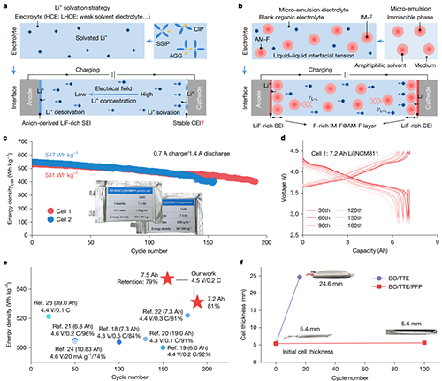 黄云辉教授、袁利霞教授团队提出了一种新型的PC基微乳电解液,在实现与石墨负极兼容的同时,助力Gr||LFP软包电池在−60 ℃~100 ℃全气候范围内正常工作。