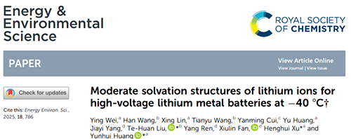 17. Energy & Environmental Science:−40 oC 下高压锂金属电池的锂离子中等溶剂化结构