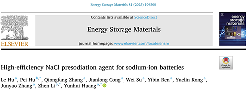 26. Energy Storage Materials:高效NaCl预钠化剂用于钠离子电池