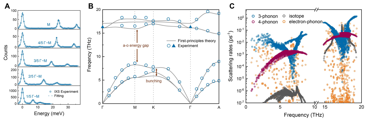 图3 θ-TaN中声子能带结构及散射机制的实验测量与第一性原理理论研究