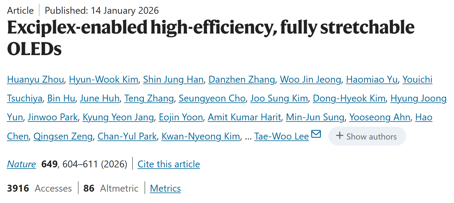 图2. 用于高效全拉伸OLED的可拉伸磷光发光层© 2026 Springer Nature Limited