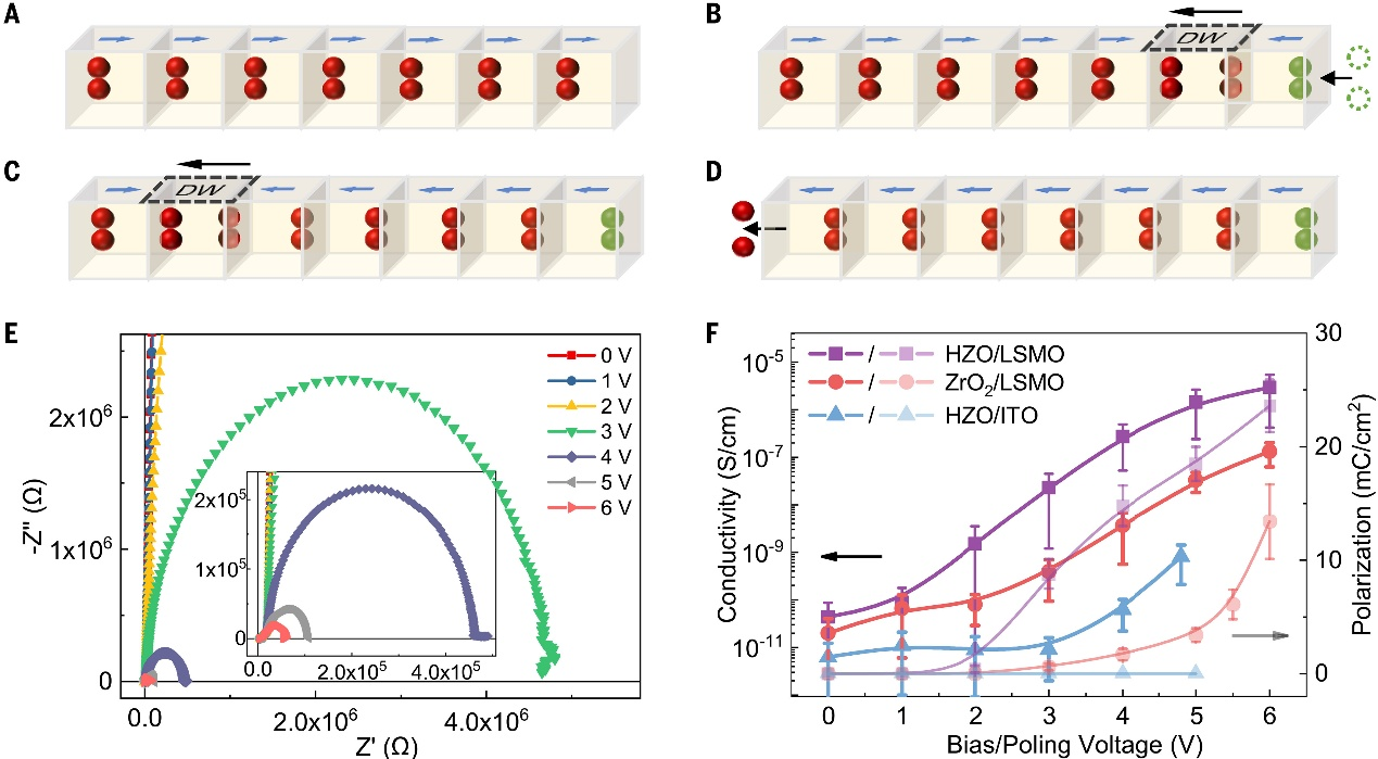 图4. 氟石型铁电体中带电畴壁运动与氧输运的耦合特性。© 2026 AAAS