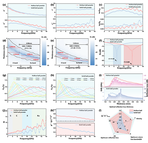 图4:空心与实心颗粒的电磁参数及微波吸收性能