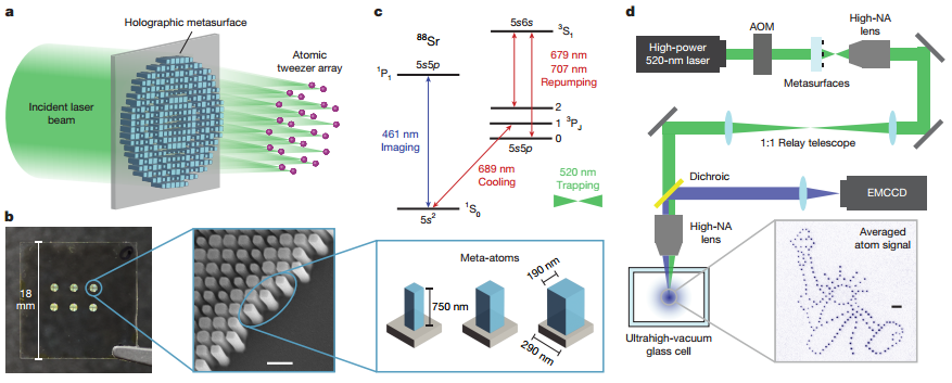 哥伦比亚大学重磅Nature :超表面光镊阵列中的单原子捕获