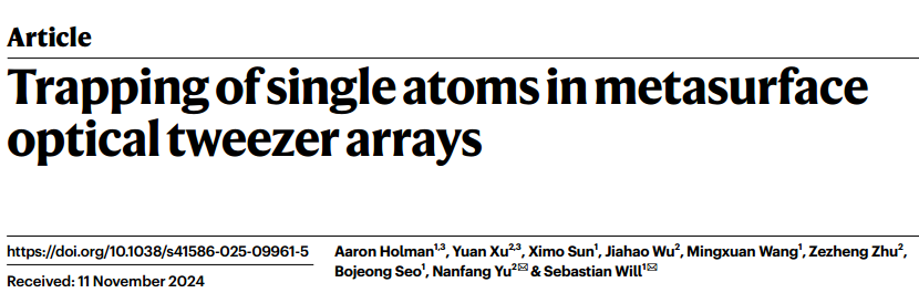 文献链接:Trapping of single atoms in metasurface optical tweezer arrays,2026,https://doi.org/10.1038/s41586-025-09961-5)